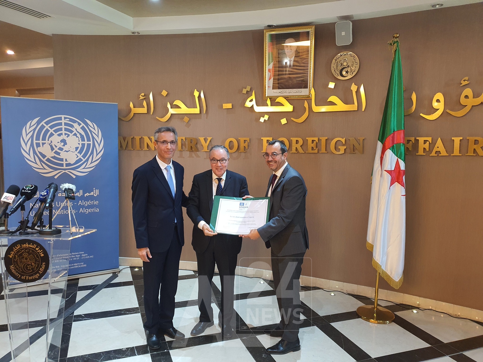 Le secrétaire général du ministère des Affaires étrangères et de la Communauté nationale à l’étranger, Amar Belani a reçu jeudi à Alger le certificat d’inscription du « Raï, chant populaire d’Algérie » sur la liste représentative du patrimoine culturel immatériel de l’humanité établie par l’UNESCO, des mains de l’ambassadeur, Coordonnateur résident du Système des Nations Unies en Algérie.