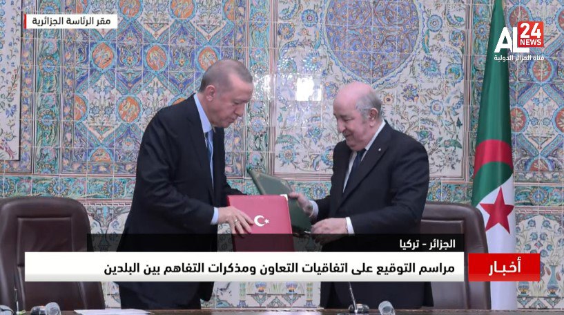 Ces accords et mémorandum de coopération portant sur plusieurs secteurs, ont été signés au siège de la Présidence de la République à l’issue d’entretiens qui ont eu lieu entre les Présidents Tebboune et Erdogan.