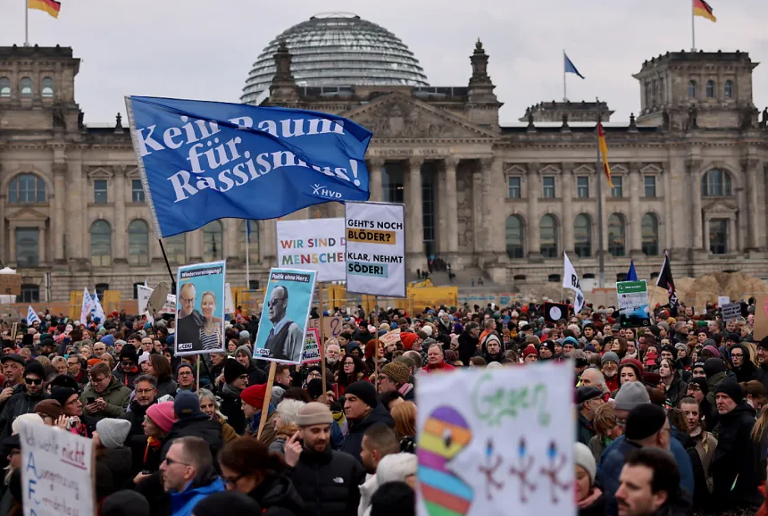 « Shame on you CDU » (Honte à toi CDU) ou encore « Merz sans coeur », pouvait-on lire sur certaines des pancartes brandies par les participants, en référence à la décision cette semaine par deux fois des conservateurs démocrates-chrétiens du parti CDU de Friedrich Merz, de s’appuyer sur les voix du mouvement Alternative pour l’Allemagne (AfD) afin de tenter de faire passer des textes à la chambre des députés pour limiter l’immigration.