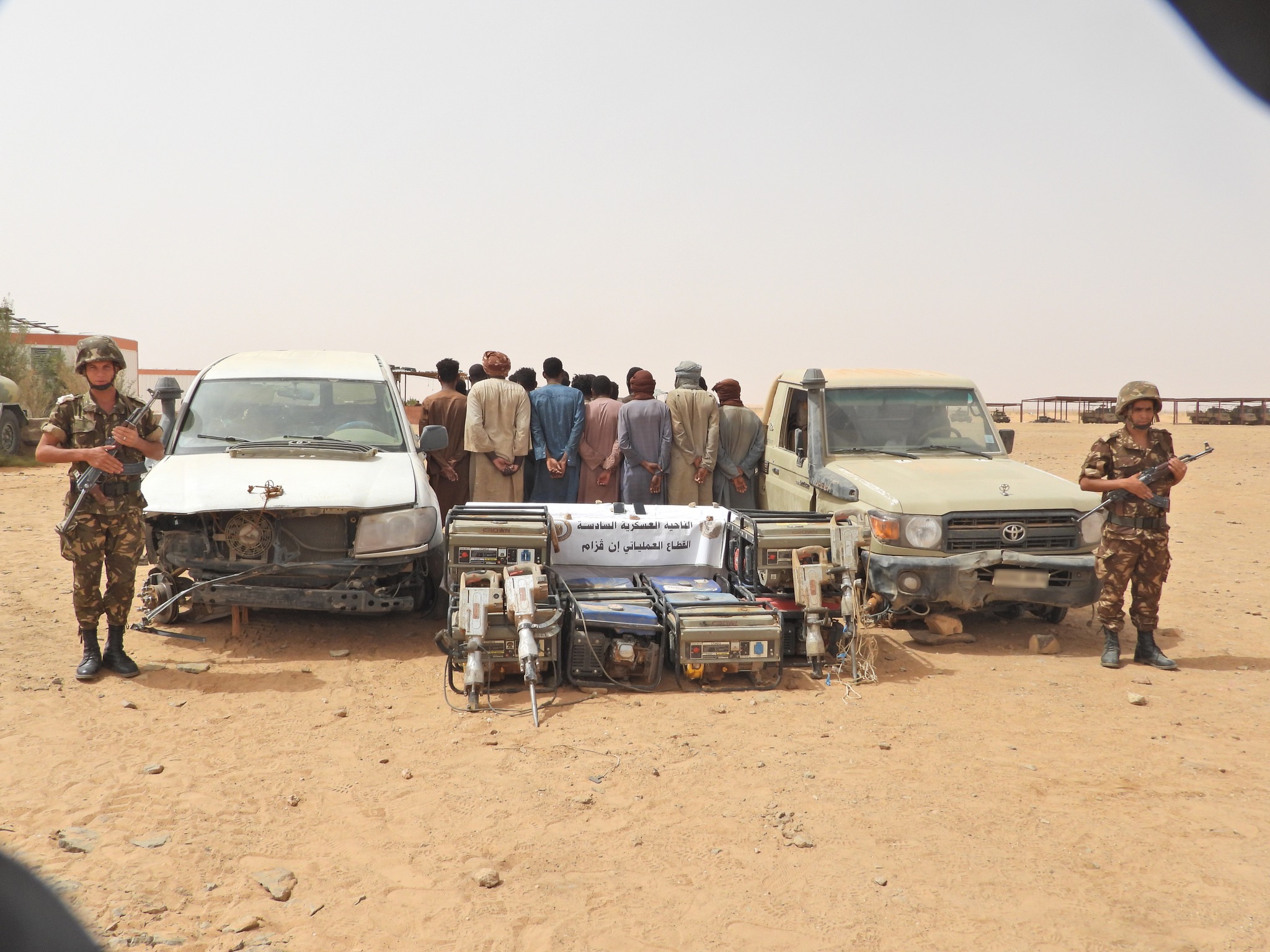 A Tamanrasset, In Guezzam, Bordj Badji Mokhtar, In Salah et In Amenas, des détachements de l’ANP « ont arrêté 284 individus et saisi 22 véhicules, 214 groupes électrogènes, 125 marteaux piqueurs, 5 détecteurs de métaux, 5,85 tonnes de mélange d’or brut et de pierres, ainsi que des quantités d’explosifs, d’outils de détonation et d’équipements utilisés dans des opérations d’orpaillage illicite, tandis que 17 autres individus ont été interceptés et 15 fusils de chasse, 37 quintaux de tabac et 362 tonnes de denrées alimentaires destinées à la contrebande et la spéculation ont été saisis lors d’opérations distinctes à travers le territoire national ».