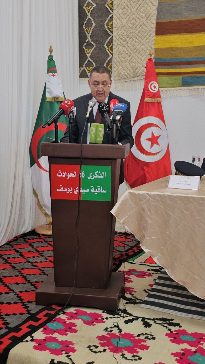 Dans un discours prononcé à la maison d’hôtes de Sakiet Sidi Youcef, lors de la cérémonie commémorant cette date historique, M. Merad, en compagnie du ministre des Moudjahidine et des Ayants droit, Laïd Rebiga, côté algérien, et des ministres de l’Agriculture, des Ressources hydrauliques et de la Pêche, M. Abdelmonem Belati, de l’Economie et du Plan, Mme Feriel Ouardi, et de la Formation professionnelle et de l’Emploi, M. Lotfi Diab, côté tunisien, a rappelé que la « commémoration de ce 66ème anniversaire qui nous fait rappeler les massacres de Sakiet Sidi Youcef, le 8 février 1958 », intervient « au moment où une importante dynamique de construction se concrétise selon une stratégie soutenue par la volonté politique du président de la République, M. Abdelmadjid Tebboune, et de son frère le président de la République tunisienne, M. Kaïs Saïed.