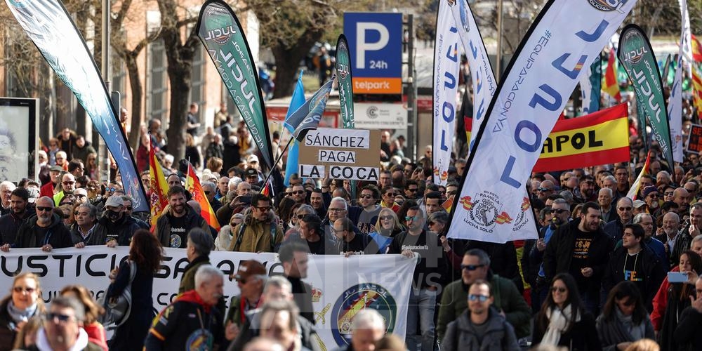 Des milliers de membres des forces de l’ordre espagnoles ont manifesté samedi à Madrid, aux côtés de dirigeants de droite, contre un projet de réforme visant notamment à supprimer l’interdiction de l’usage sans