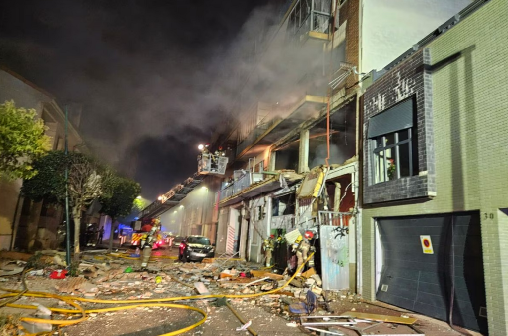 « Une explosion présumée a provoqué un incendie, puis l’effondrement d’une partie de l’édifice », a souligné la maire de la ville, Gema Igual, s’exprimant à la télévision