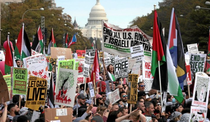 Des milliers de personnes ont manifesté dans les rues de Washington aux Etats-Unis, pour appeler à la fin de l’agression génocidaire à Ghaza où les zones nord sont le théâtre d’escalade des massacres de l’occupant sioniste contre les civils palestiniens, depuis la mi-octobre dernier, a rapporté lundi l’agence de presse palestinienne (Wafa).