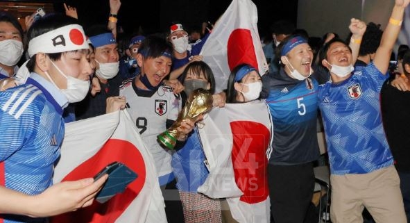 Des Japonais enthousiastes ont tenu, tôt vendredi matin au célèbre carrefour de Shibuya à Tokyo, à saluer avec une puissante clameur, la victoire surprise de leur sélection de football contre l’Espagne (2-1), à la Coupe du monde, lors de la 3e et dernière journée, groupe E, de la phase des poules.