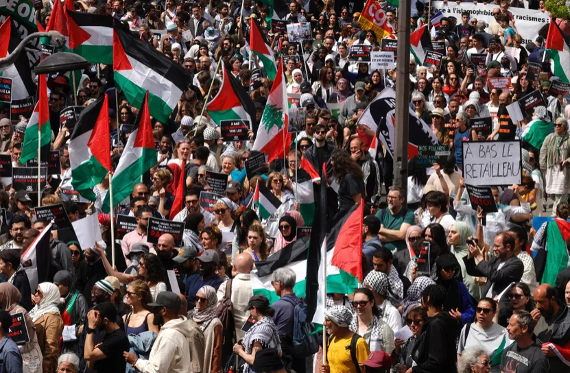 Au milieu de drapeaux français et palestiniens, les manifestants scandent « non, non à l’islamophobie « , avec plusieurs slogans et pancartes ciblant le ministre de l’Intérieur : « Même si Retailleau ne veut pas, nous on est là ».