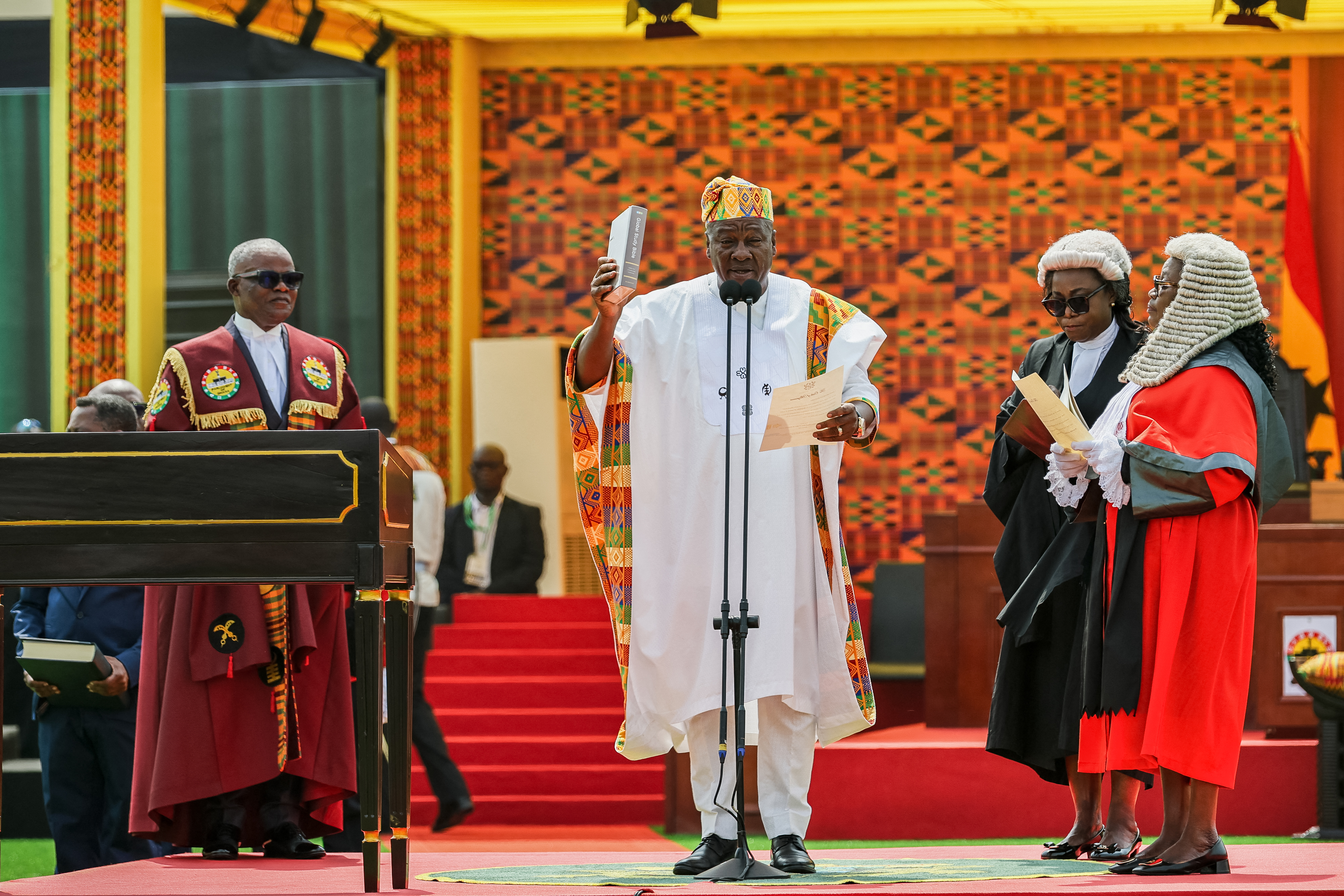 Sa vice-présidente, Jane Naana Opoku-Agyemang, première femme à accéder à cette fonction au Ghana, a elle aussi prêté serment.