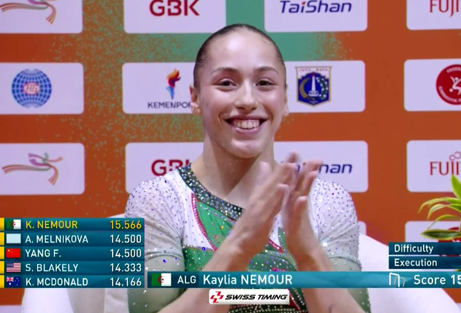 L’Algérienne Kaylia Nemour s’est adjugée le titre mondial du concours des barres asymétriques des Mondiaux 2025 de gymnastique artistique, qui se tiennent à Jakarta (Indonésie).