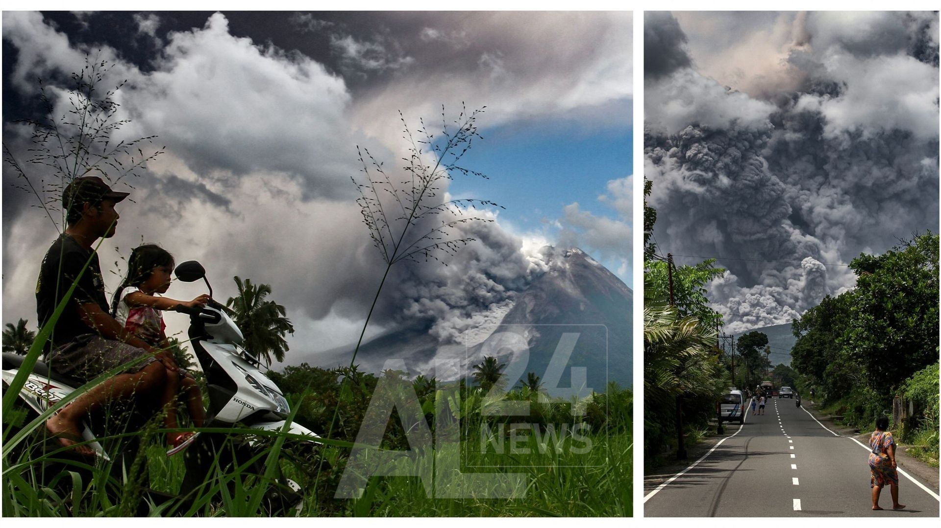 Des maisons et des routes d’un village proche du volcan étaient recouvertes de cendres, ont montré des images de la chaîne de télévision locale Kompas TV.