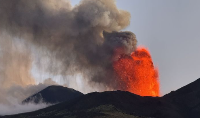 L’Institut national italien de géophysique et de volcanologie a signalé une « fontaine de lave » jaillissant du volcan dimanche matin, accompagnée d’un « nuage volcanique » se dispersant vers l’est et le sud-est.