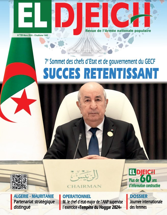Sous le titre « Algérie : place prestigieuse à l’échelle régionale et internationale », la revue mentionne dans son éditorial que « sur la voie tracée par des millions de nos valeureux Chouhada avec leur sang pur, et dont nous évoquons les exploits au mois de mars de chaque année, afin que leur héroïsme soit le phare qui guide les générations successives, la nouvelle Algérie réalise de précieux progrès tant sur le plan interne qu’externe ».