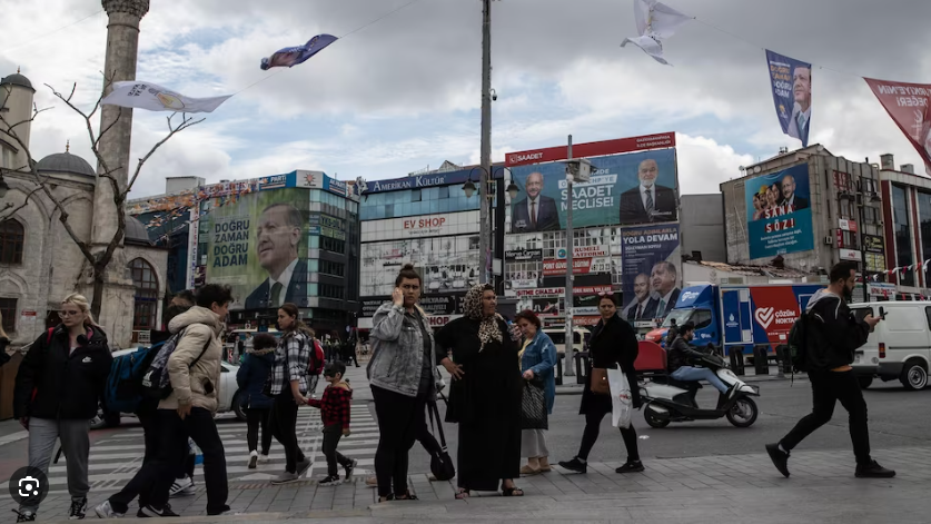 À Ankara, une scène a été montée devant le siège du Parti de la justice et du développement (AKP) du président sortant Recep Tayyip Erdogan, avec de la musique forte et des personnes se rassemblant avec des drapeaux turcs et des symboles du parti. Des centaines de personnes se trouvent près de la scène.