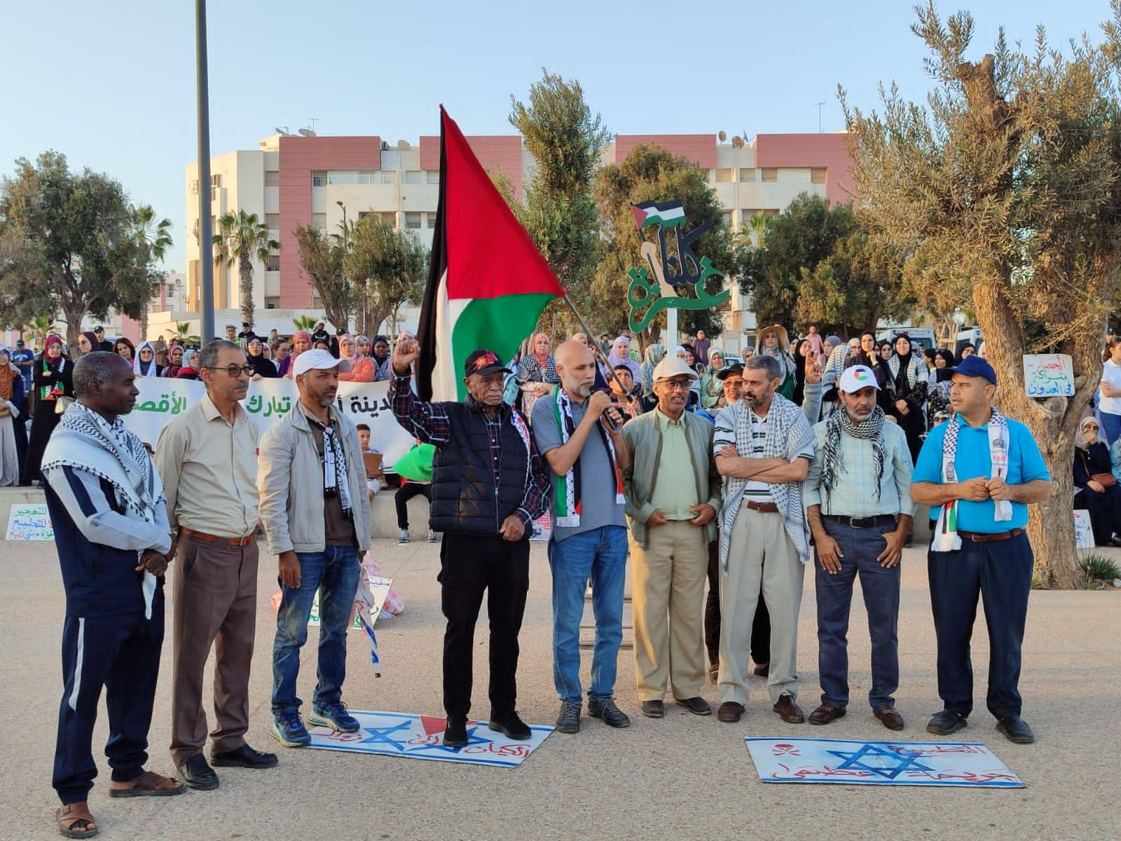« L’Etat marocain est tenu de clarifier sa position face aux exactions sionistes impérialistes et d’annuler tous les accords conclus avec l’entité sioniste criminelle, ennemie de la paix régionale et mondiale », a indiqué le communiqué du Front marocain de soutien à la Palestine et de lutte contre la normalisation.
