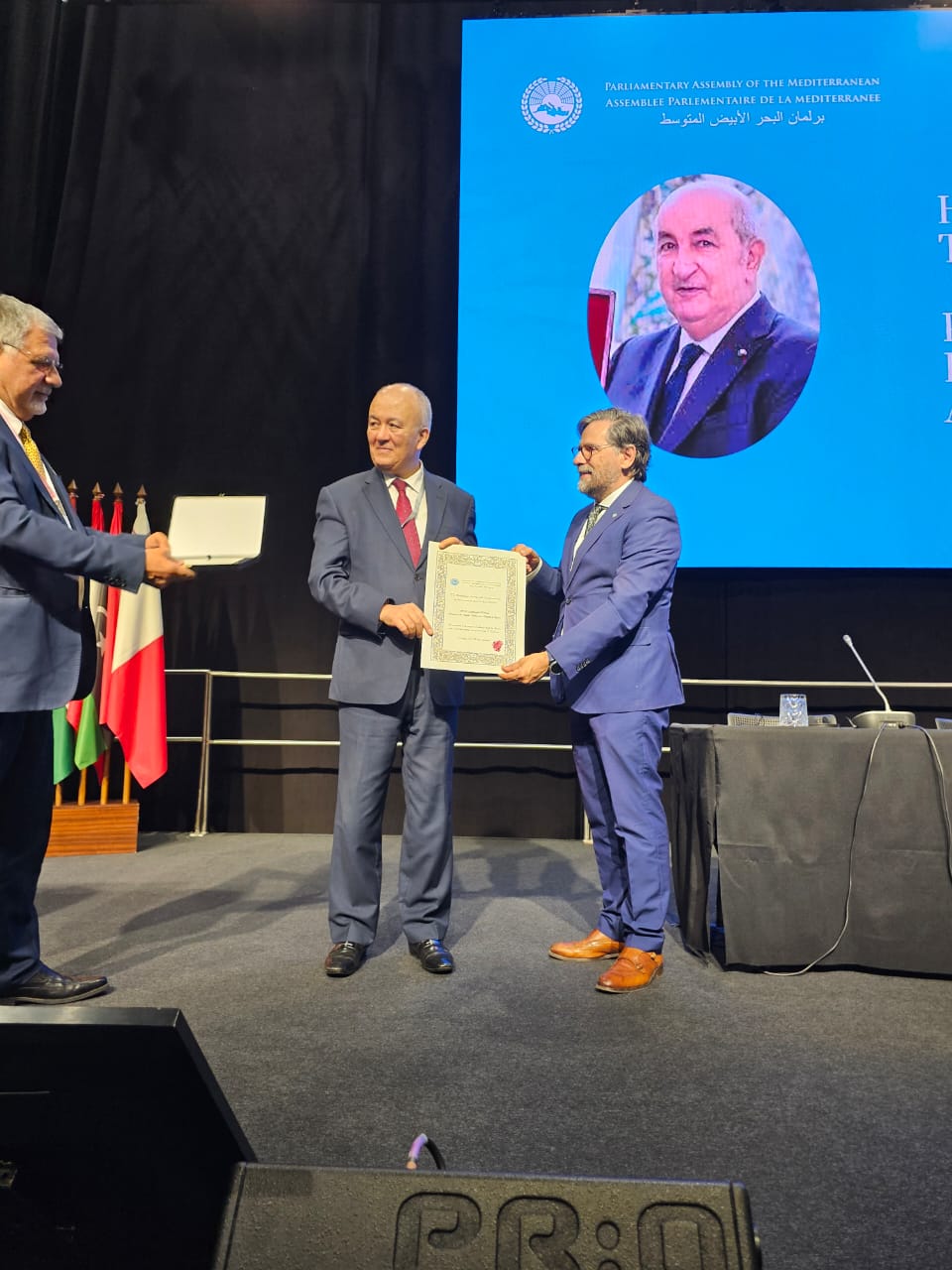 Le « Prix d’Excellence pour la Méditerranée » décerné au président de la République, M.Abdelmadjid Tebboune, a été remis à l’ambassadeur d’Algérie au Portugal, Chakib Rachid Gaïd, « en reconnaissance du rôle humanitaire et solidaire de l’Algérie envers la Tunisie, dans le cadre de la lutte contre les retombées de la pandémie du Covid-19 », ajoute le communiqué qui précise que le Prix « décerné chaque année, est dédié aux compétences et initiatives des Gouvernements des Etats méditerranéens membres, dont les réalisations contribuent au développement et à la promotion de la région méditerranéenne et répondent aux aspirations de ses peuples ».