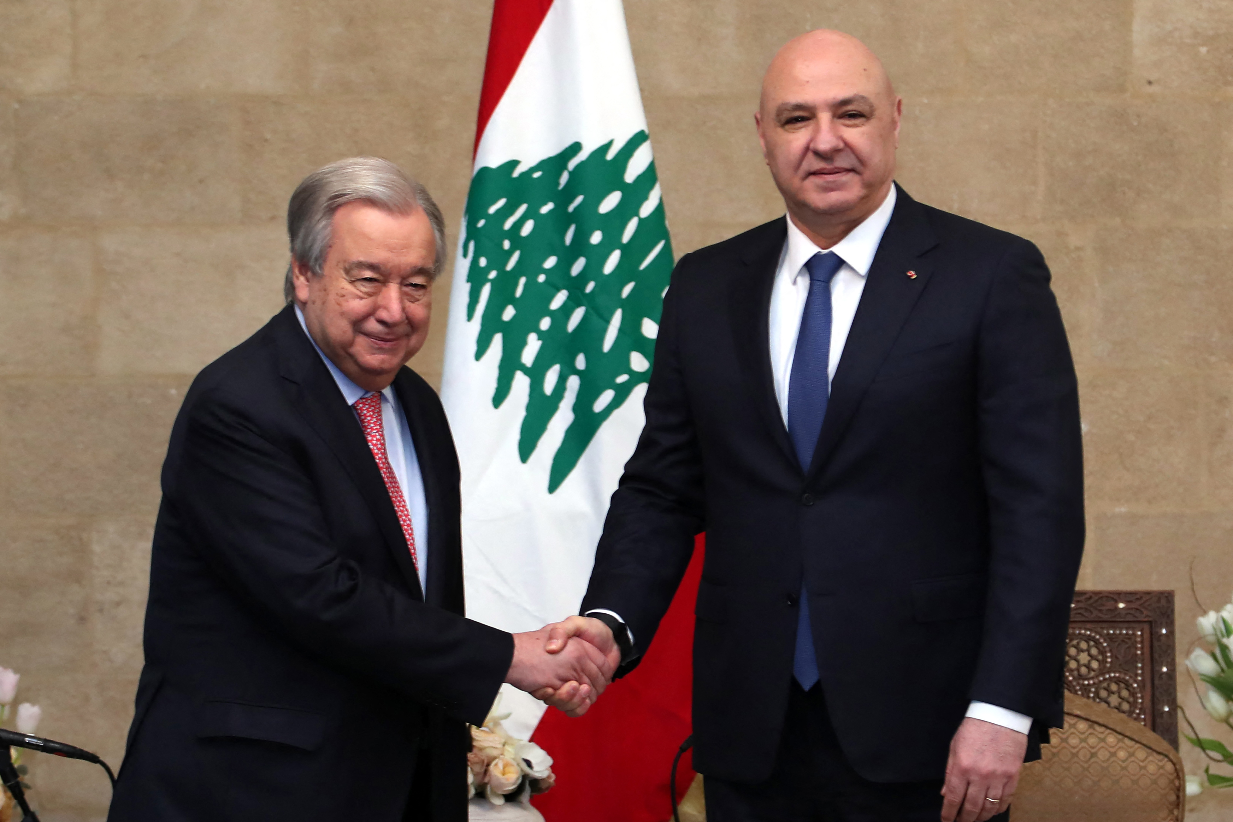 Lors de son entretien avec Guterres, le nouveau président Joseph Aoun a réclamé samedi le retrait de l’armée israélienne « dans les délais fixés » par l’accord.