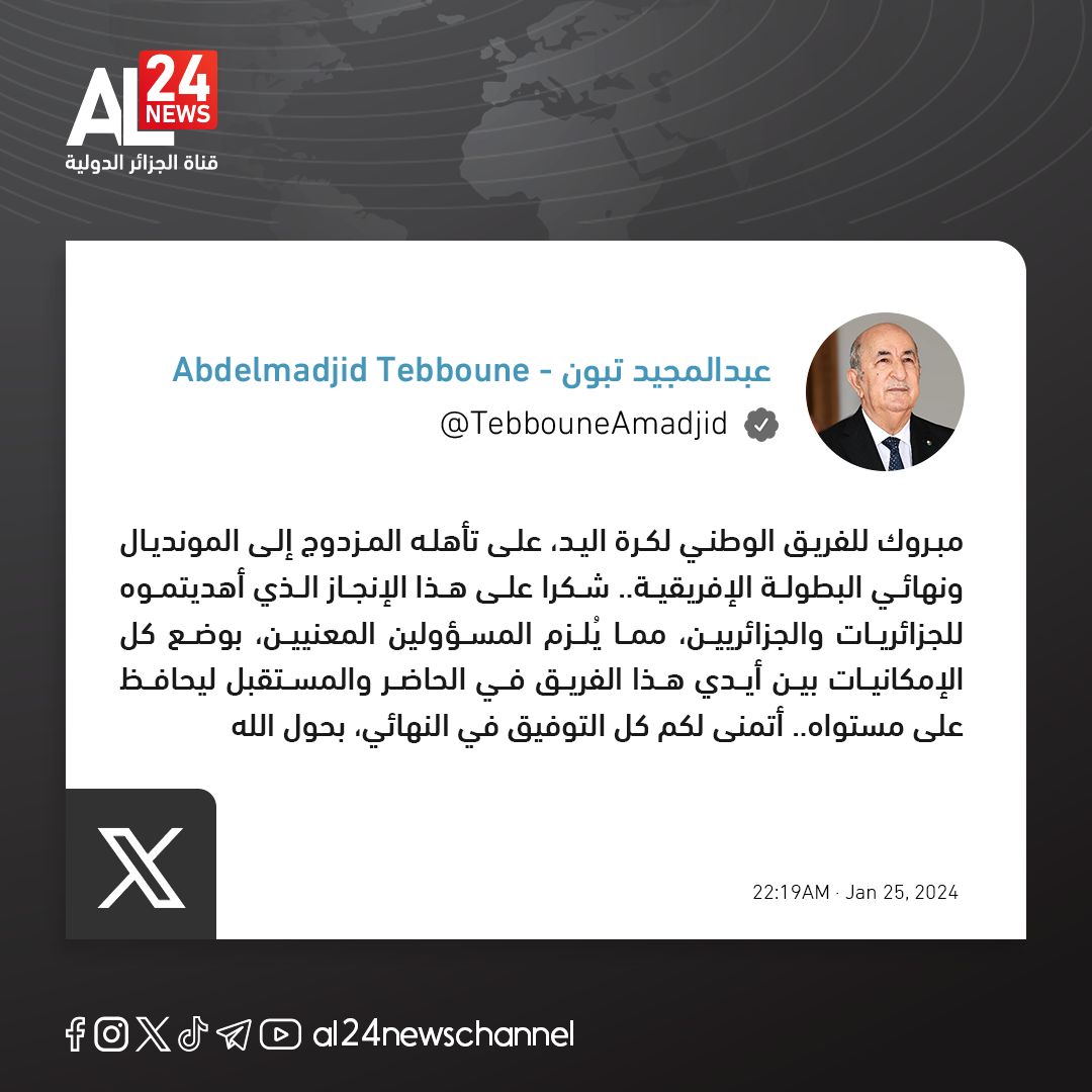 Merci pour cet exploit que vous avez offert aux Algériennes et Algériens, ce qui incombe aux responsables concernés de mobiliser présentement et à l’avenir tous les moyens au profit de cette sélection afin qu’elle préserve sa performance ..