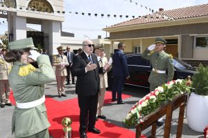 A l’entame et après la cérémonie d’accueil, le Président de la République a écouté l’hymne national et a reçu les honneurs rendus par les différentes formations des Forces de l’ANP, pour rendre, ensuite, le salut à la délégation d’accueil, à savoir le Général d’Armée, Commandant de la Garde républicaine, le Secrétaire général du ministère de la Défense nationale et les Commandants de Forces et de la Gendarmerie nationale.