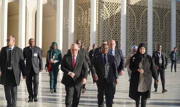 Le président du Mozambique a été accueilli par le recteur de Djamaâ El-Djazaïr, Mohamed Maâmoun Al Kacimi Al Hoceini.