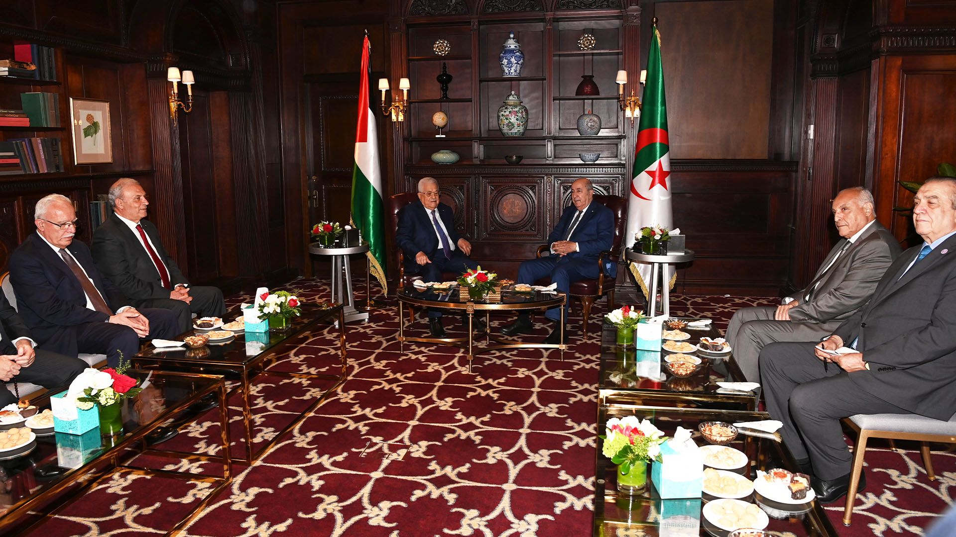 Le Président de la République, M. Abdelmadjid Tebboune, a reçu lundi matin à New York, son homologue Palestinien, Mahmoud Abbas.