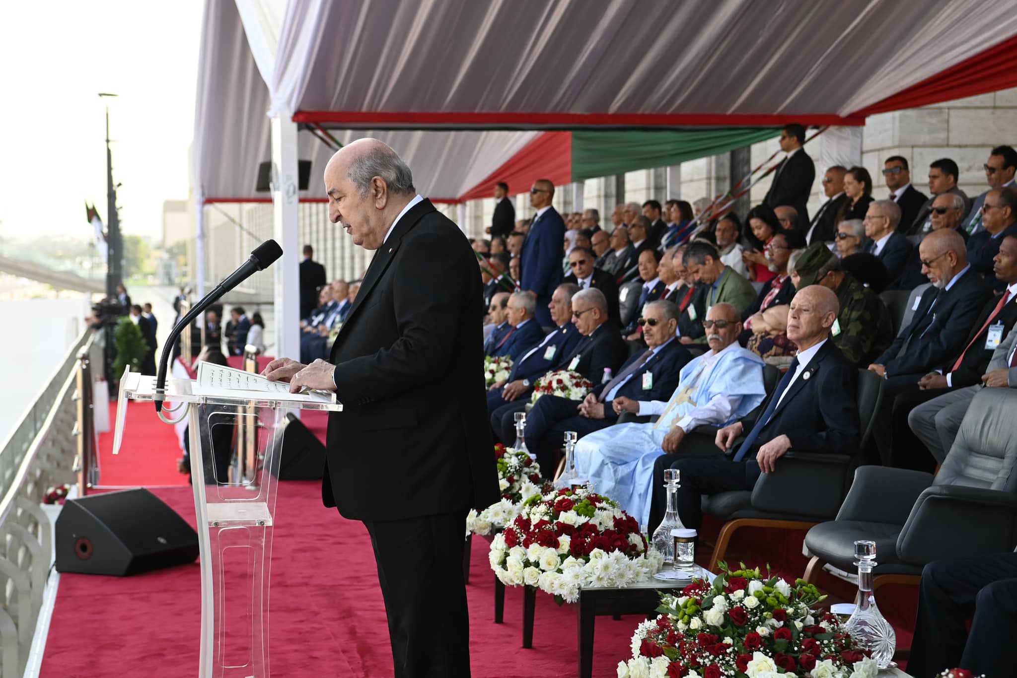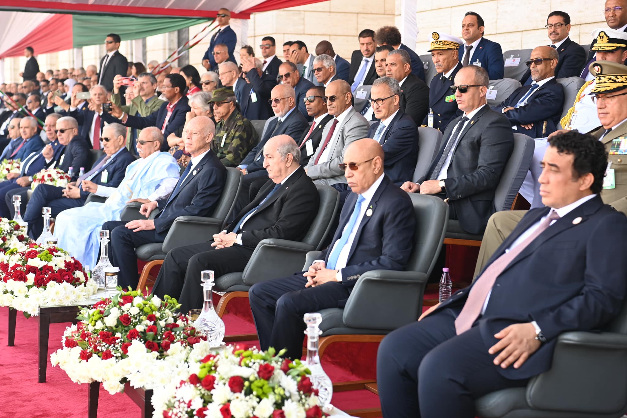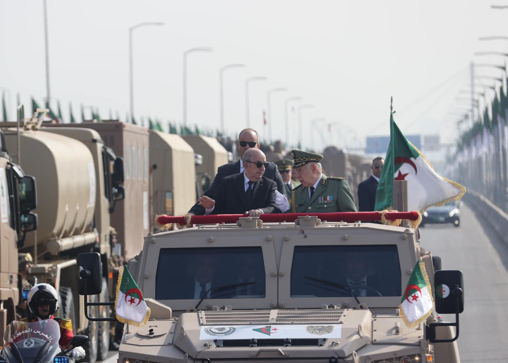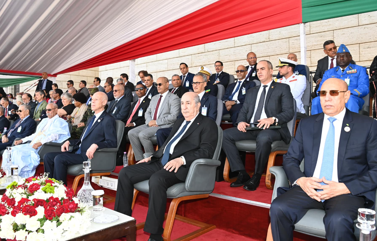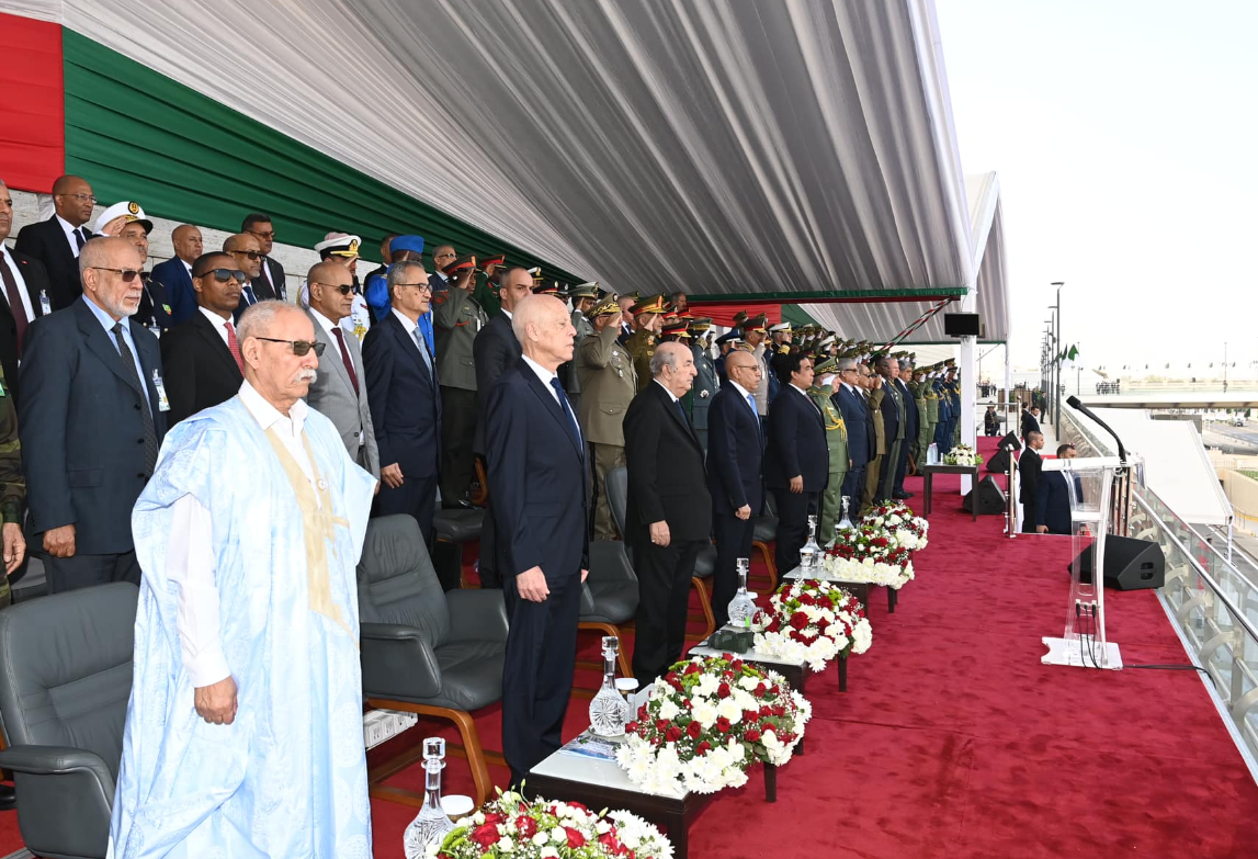 En commémoration du 70ème anniversaire du déclenchement de la glorieuse guerre de libération du 1er novembre 1954, et dans la perspective de perpétuer nos traditions militaires séculaires, Abdelmadjid Tebboune, Président de la République, Chef Suprême des Forces Armées, Ministre de la Défense Nationale, a supervisé vendredi 1 novembre 2024, au niveau de la route nationale N 11, longeant la Grande Mosquée d’Alger, le défilé militaire organisé par l’Armée Nationale Populaire et auquel ont assisté, en qualité d’invités d’honneur, les Chefs d’Etat de la Tunisie, de la Mauritanie, de la République Arabes Sahraouie Démocratique, du Président du Conseil Présidentiel libyen, ainsi que des représentants de certains pays frères et amis, souligne le communiqué du MDN.