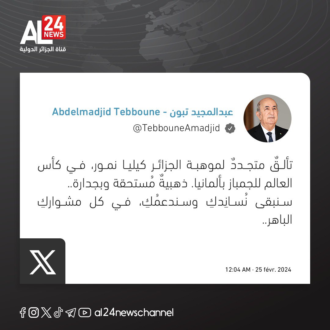 Le Président algérien M. Abdelmadjid Tebboune a félicité la championne Kaylia Nemour pour la médaille d’or de