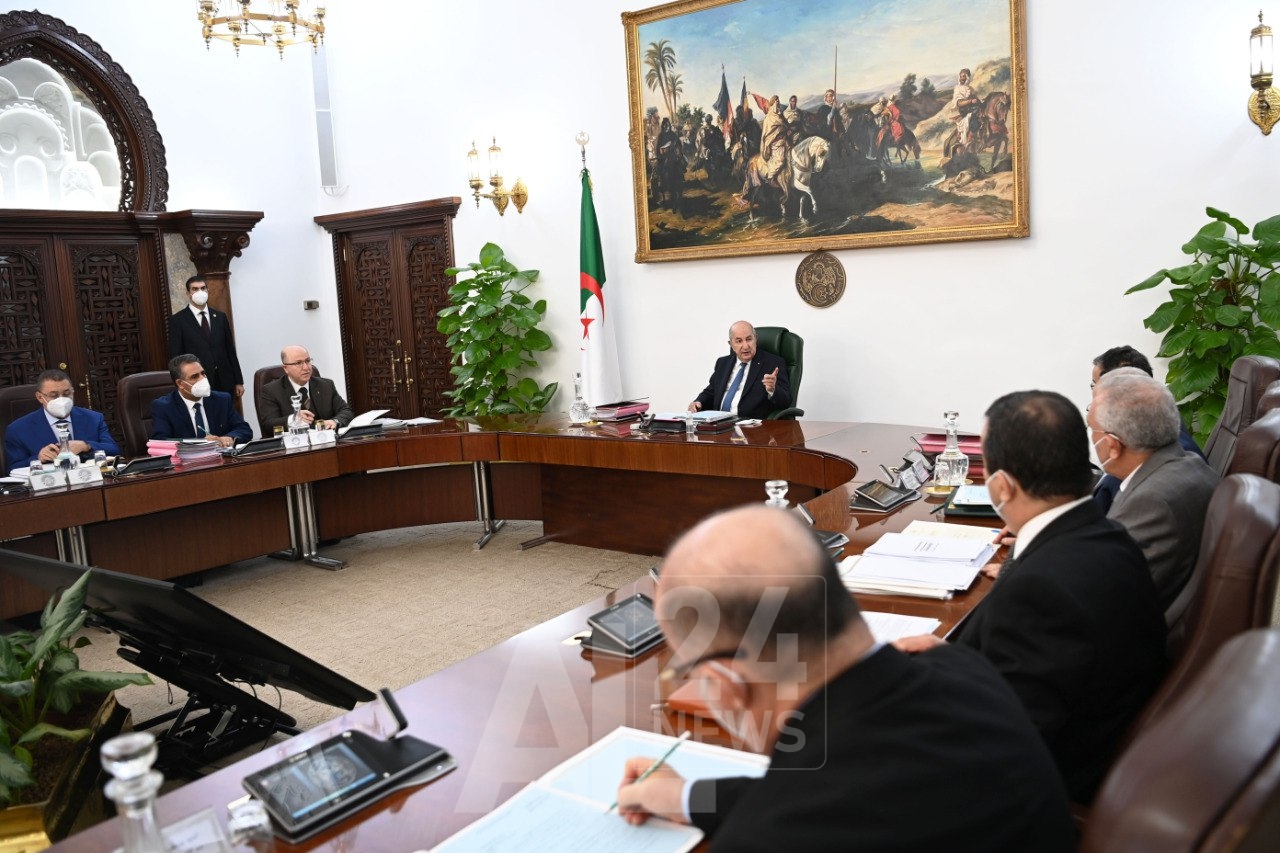 « Monsieur Abdelmadjid Tebboune, Président de la République, Chef suprême des Forces armées, ministre de la Défense nationale, préside, ce jour, une réunion du Conseil des ministres consacrée à deux projets de loi relatifs à