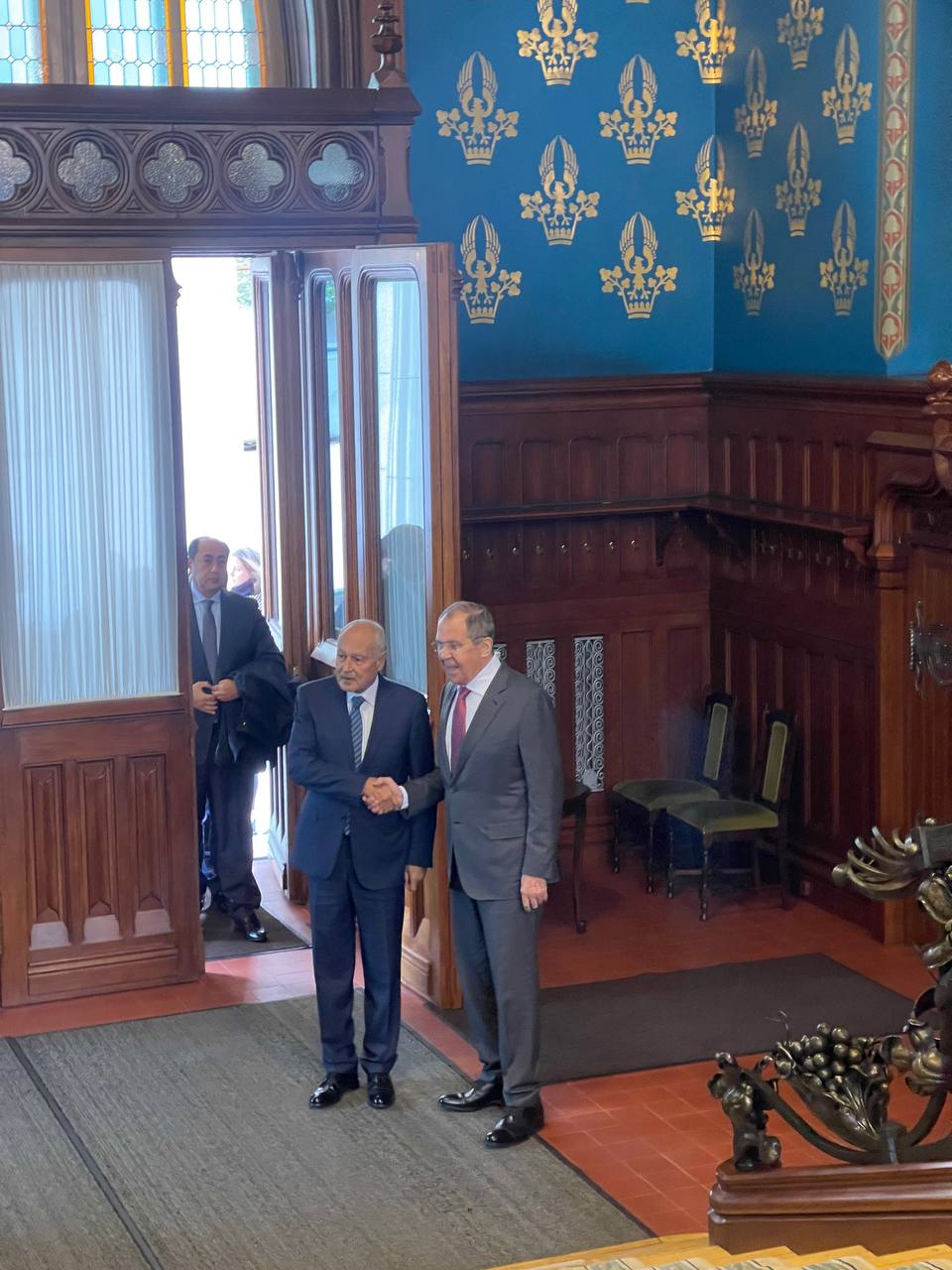 presse à l’occasion de la visite à Moscou du secrétaire général de la Ligue arabe, Ahmed Aboul Gheit.