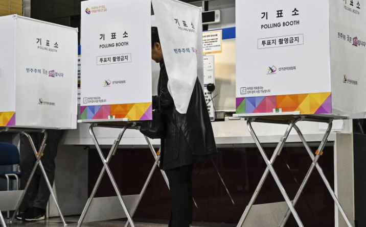 Dans un bureau de vote du district de Gwangjin, un quartier de Séoul, des électeurs faisaient ainsi patiemment la queue tôt mercredi matin pour montrer leurs documents d’identité, recevoir leur bulletins de vote, avant