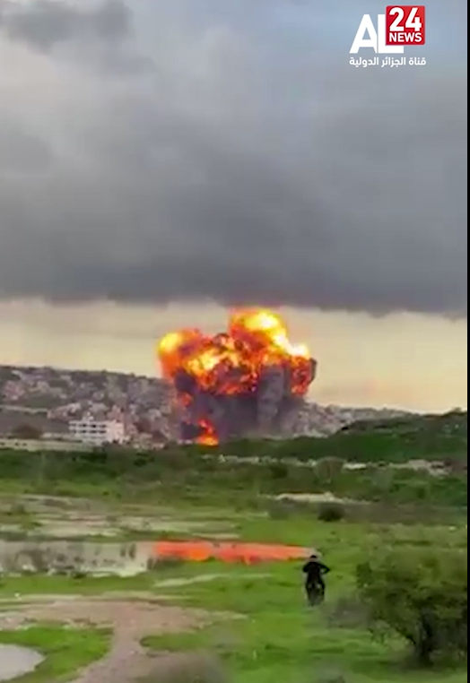 Des vidéos filmées par des citoyens et relayées sur les réseaux sociaux, montrent une énorme explosion et une épaisse colonne de fumée s’élevant dans le ciel au-dessus de la zone touchée par les frappes des forces sionistes