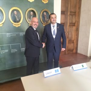 Le ministre s’est entretenu également avec le Directeur du Bureau de l’organique, des politiques et de l’appui aux programmes, du Programme des Nations unies pour le développement (PNUD), Marcos Athias Neto, avec lequel il a examiné les perspectives et les moyens du renforcement de la coopération bilatérale avec le PNUD dans le domaine du développement et de financement des énergies renouvelables, et de la transition énergétique, outre, l’échange d’expertises et d’expériences et la consolidation des capacités, à travers des actions concrètes à même d’assurer un accompagnement dans la réalisation des objectifs nationaux, notamment le développement des énergies renouvelables et l’efficience énergétique, ainsi que les projets y afférents, ajoute le communiqué.