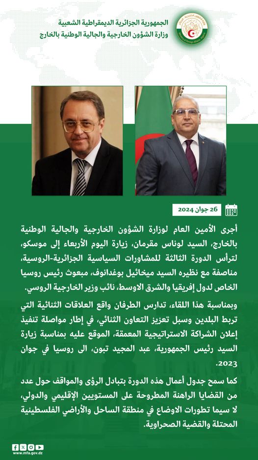Magramane et Bogdanov président à Moscou la troisième session des consultations politiques algéro-russes