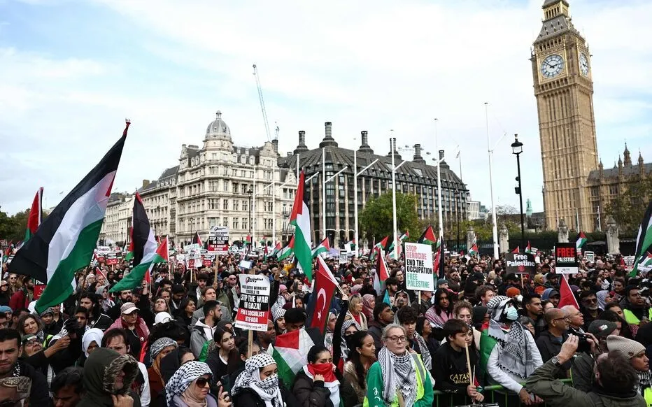 Lors de la manifestation, des slogans pro-palestiniens ont été projetés sur l’emblématique Big Ben, notamment : « Arrêtez de bombarder Ghaza », « Cessez-le-feu maintenant », ou encore « Arrêtez la guerre maintenant ».