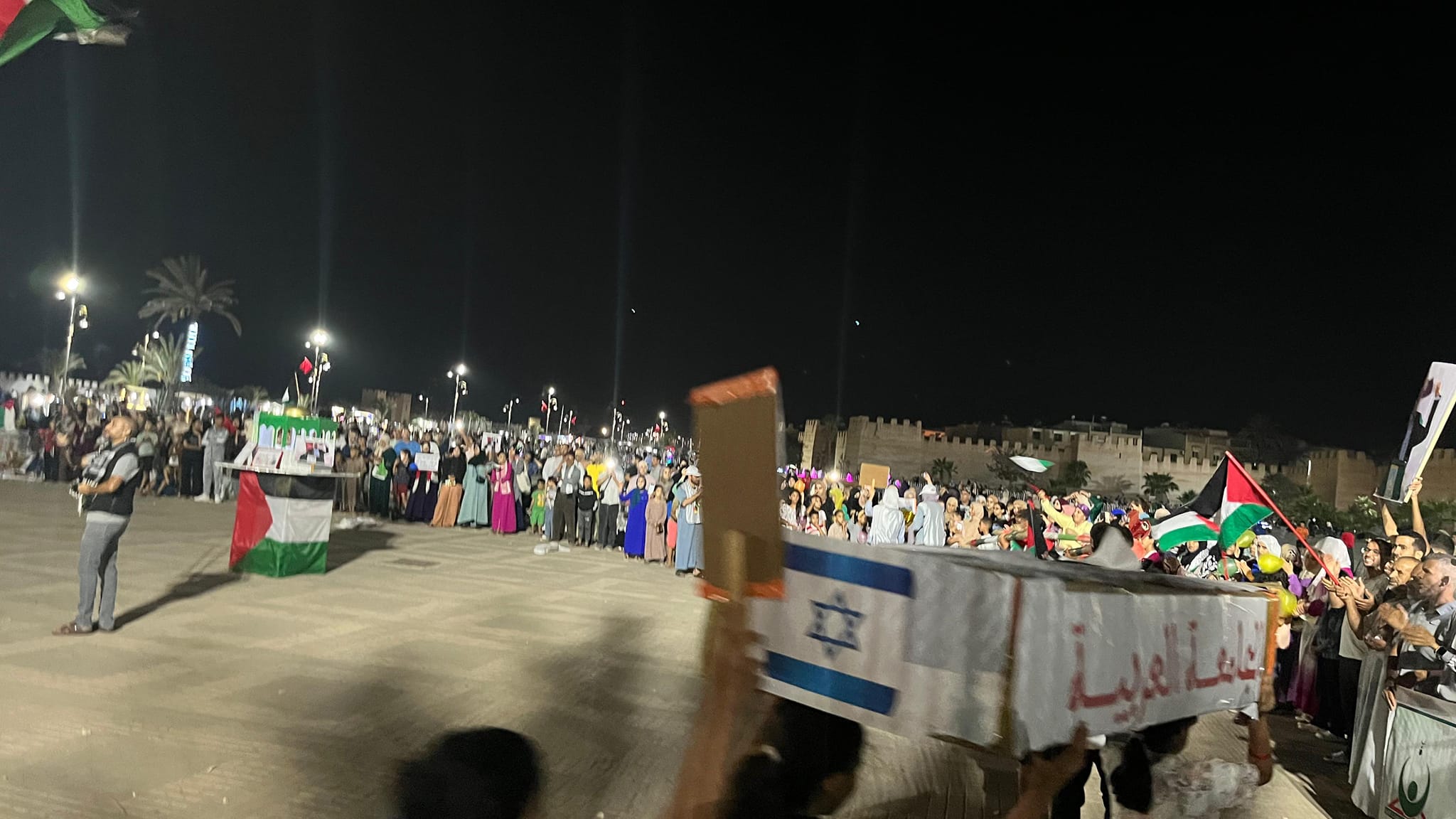 « Les manifestations d’aujourd’hui [vendredi, 16 août] sont également organisées pour confirmer le rejet populaire de tout accord de normalisation avec l’entité occupante, dont la bataille Déluge d’Al-Aqsa a révélé sa véritable nature : une entité criminelle, tueuse d’enfants et de femmes », a expliqué à des médias Mohamed Al-Riahi Al-Idrissi, secrétaire général de l’Instance marocaine de soutien aux causes de la Oumma.