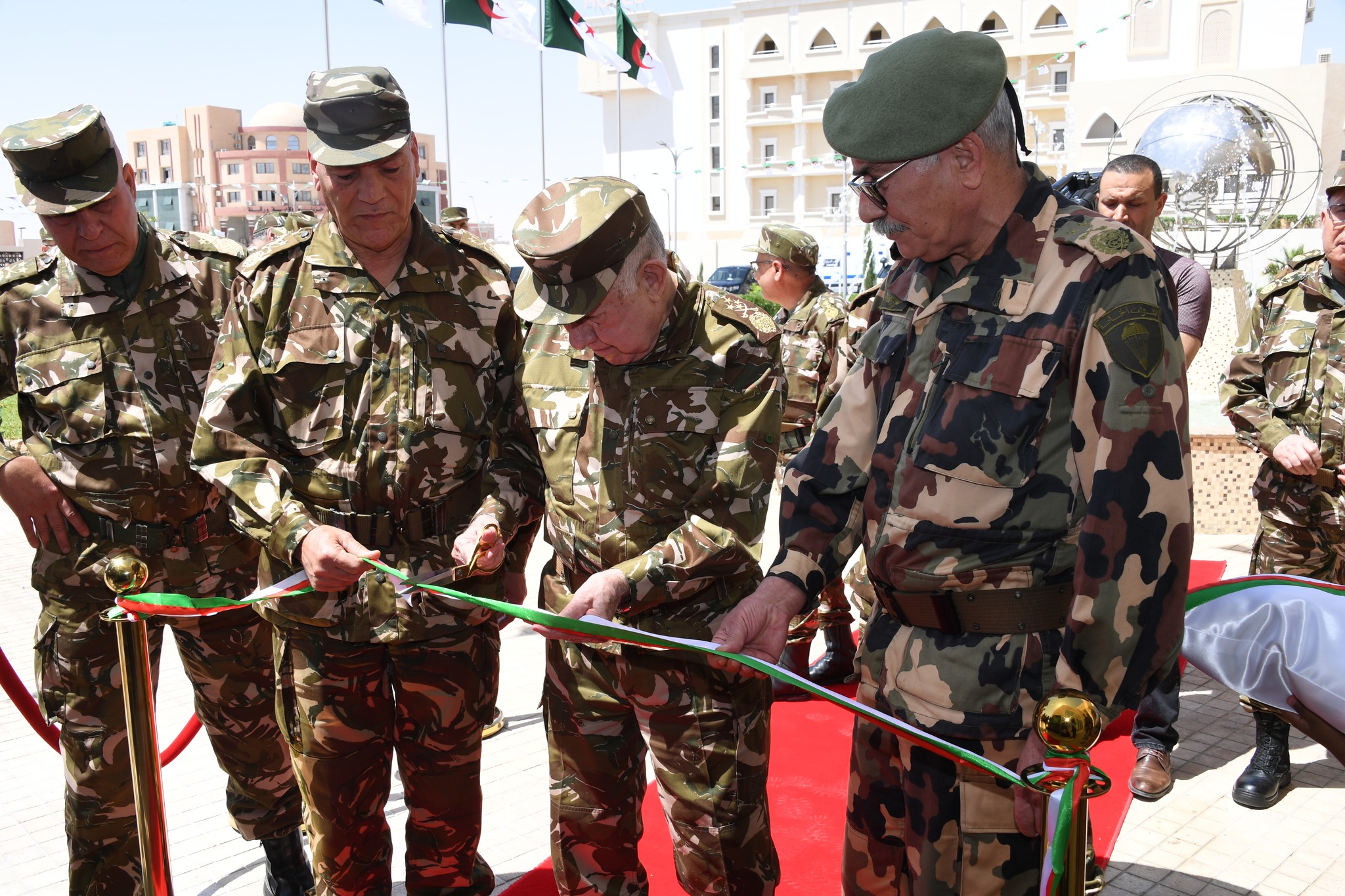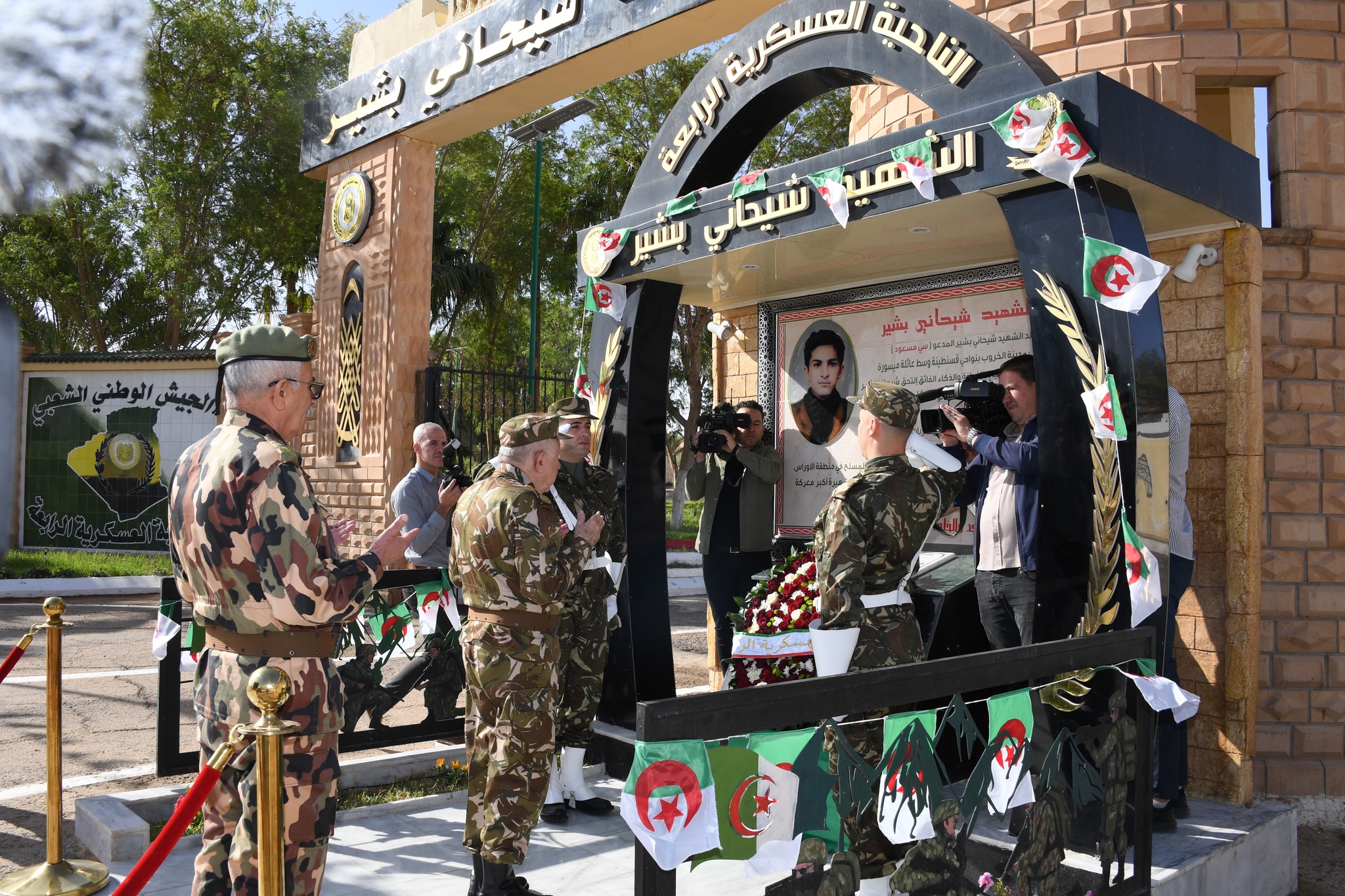 La visite a été entamée depuis le siège du commandement de la région à Ouargla, où après la cérémonie d’accueil, donnée par le Général-Major Omar Tlemçani, Commandant de la 4ème Région Militaire, Monsieur le Général d’Armée a observé un moment de recueillement à la mémoire du Chahid Bachir CHIHANI dont le siège de ce Commandement porte son nom, et a déposé une gerbe de fleurs devant sa stèle commémorative, avant de réciter la Fatiha à sa mémoire et à celle des valeureux Chouhada.