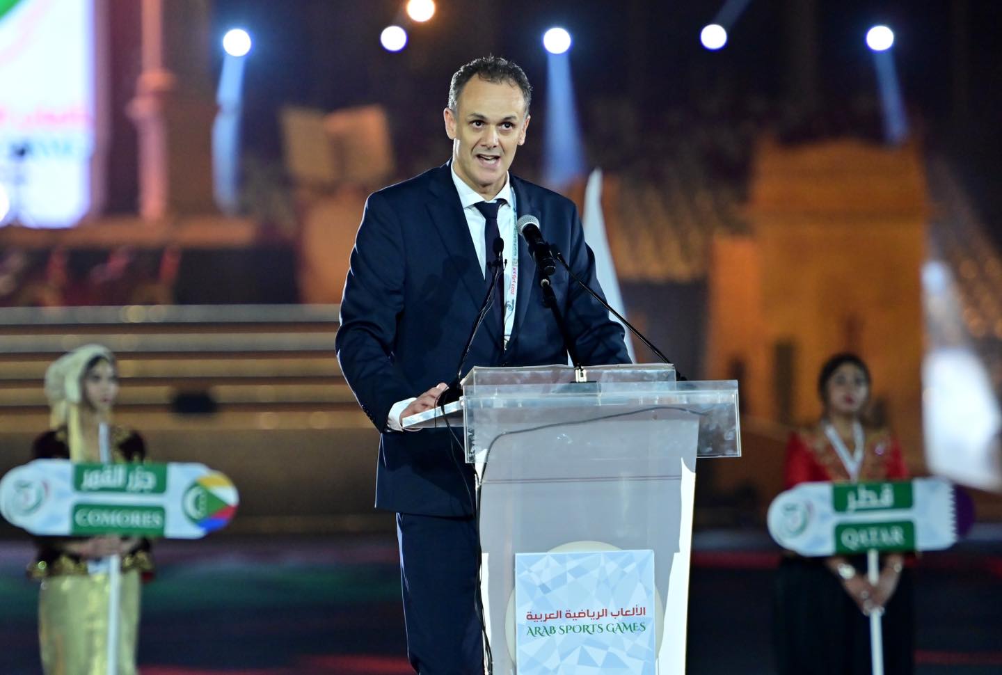 « Nous sommes réunis aujourd’hui à la cérémonie d’ouverture de ce grand évènement sportif au moment où notre pays célèbre, le 5 juillet 2023, la fête de l’Indépendance et de la jeunesse, en étant convaincus que cette 15e édition constituera une plus-value et une halte dans l’Histoire des peuples algérien et arabes, en consacrant l’esprit de compétition entre les athlètes et en diffusant les valeurs de paix (…) les valeurs nobles du mouvement olympique, l’objectif auquel nous aspirons tous et que nous tenons à consacrer à travers le slogan de cette édition : « Avec le sport on évolue, et à Alger on se rassemble ».