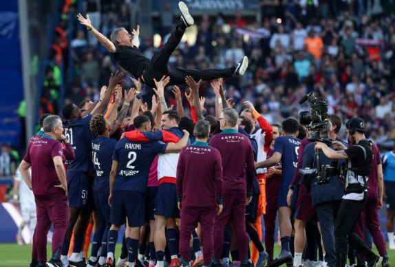 Le but du titre a été marqué après la pause par Désiré Doué, qui a repris de volée aux six mètres un centre de Khvicha Kvaratskhelia (55e). Les Parisiens ne peuvent désormais plus être rattrapés par leur dauphin Monaco, qui compte 24 points de retard et n’a plus que sept matchs à disputer.