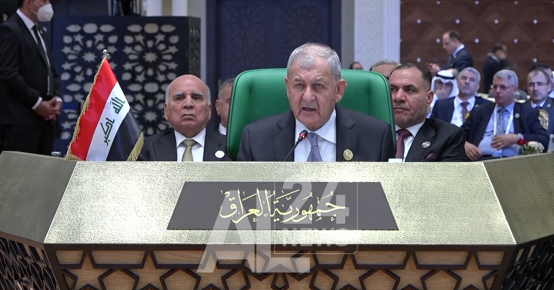 Dans une allocution prononcée au deuxième jour des travaux du 31e sommet arabe, tenu au Centre international des conférences (CIC) « Abdelatif Rahal » et présidé par le président de la République M. Abdelmadjid Tebboune, président de la session, le président irakien a indiqué que les changements survenus dans certains pays arabes et au niveau régional et international, soulignent la nécessité pour les participants à ce sommet « de sortir avec des décisions consensuelles permettant de mieux appréhender la réalité des relations internationales en cette conjoncture délicate, et de parvenir à une entente constructive entre nos pays et avec les autres pays de la région et la communauté internationale, pour le renforcement de la sécurité et de la stabilité, et la sauvegarde des intérêts suprêmes de nos peuples ».