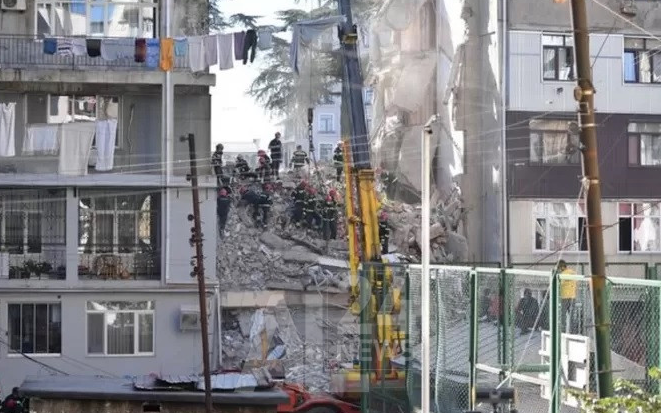 D’après l’antenne locale du ministère des Situations d’urgence, l’entrée de l’immeuble s’est effondrée suite à une explosion due au gaz.