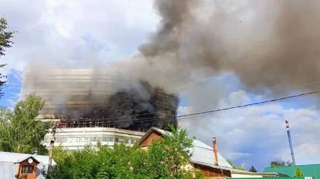Des vidéos diffusées par les services de secours montrent l’immeuble de plusieurs étages d’où s’échappent des volutes de fumée noire, des pompiers tentant d’éteindre les flammes.