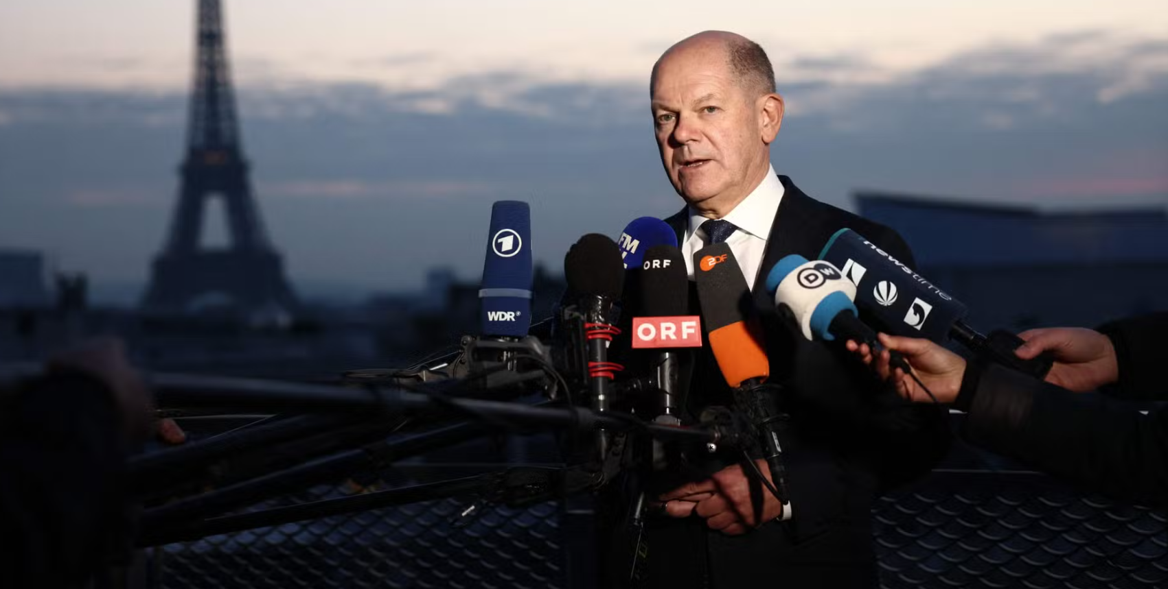 La discussion à ce stade « est totalement prématurée et c’est le mauvais moment pour la mener », a dit Olaf Scholz se disant « un peu irrité par ce débat », a déclaré Olaf Scholz après une réunion d’urgence à Paris avec ses homologues européens.