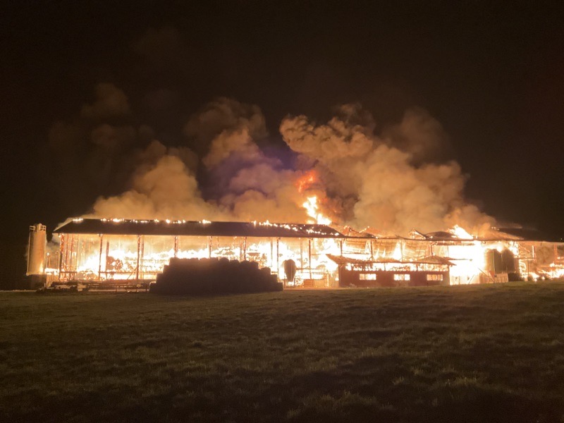 « A l’arrivée des secours, les propriétaires ont pu évacuer une petite partie de l’important cheptel de bovins qui s’y trouvaient soit environ une cinquantaine de têtes de bétail ainsi que quelques machines agricoles qui se trouvaient stationnées à l’intérieur », a indiqué la police.