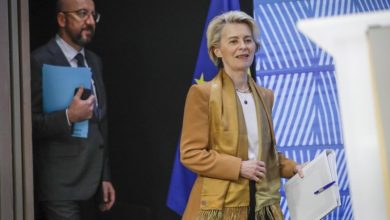 Le président du Conseil européen Charles Michel et la présidente de la Commission européenne Ursula von der Leyen se rendent…