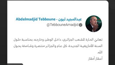 Le président de la République, Abdelmadjid Tebboune, a présenté, dimanche, ses meilleurs vœux à l’ensemble du peuple algérien, à l’intérieur…