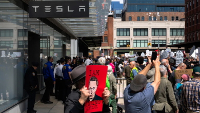 Plusieurs centaines de manifestants se sont rassemblés samedi devant des concessionnaires Tesla aux Etats-Unis, dans le cadre d’une journée mondiale…