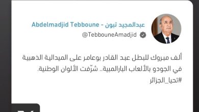 Le président algérien, Abdelmadjid Tebboune, a félicité, jeudi, le para-judoka algérien, Abdelkader Bouamer, pour sa médaille d’or dans la catégorie…