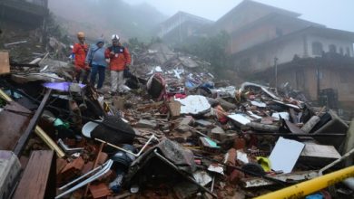 Des équipes de secours brésiliennes sont à pied d’oeuvre sous une pluie battante, pour venir en aide aux victimes de…