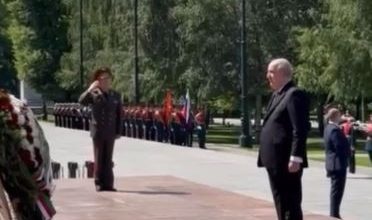 Le président de la République dépose une gerbe de fleurs devant la stèle du Soldat inconnu à Moscou