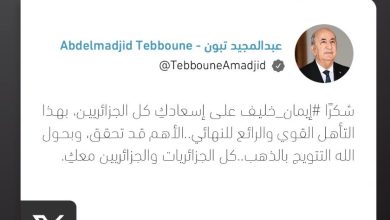Le président de la République, M.Abdelmadjid Tebboune, a félicité, mardi soir, Imane Khelif (66 kg), pour sa qualification pour la…