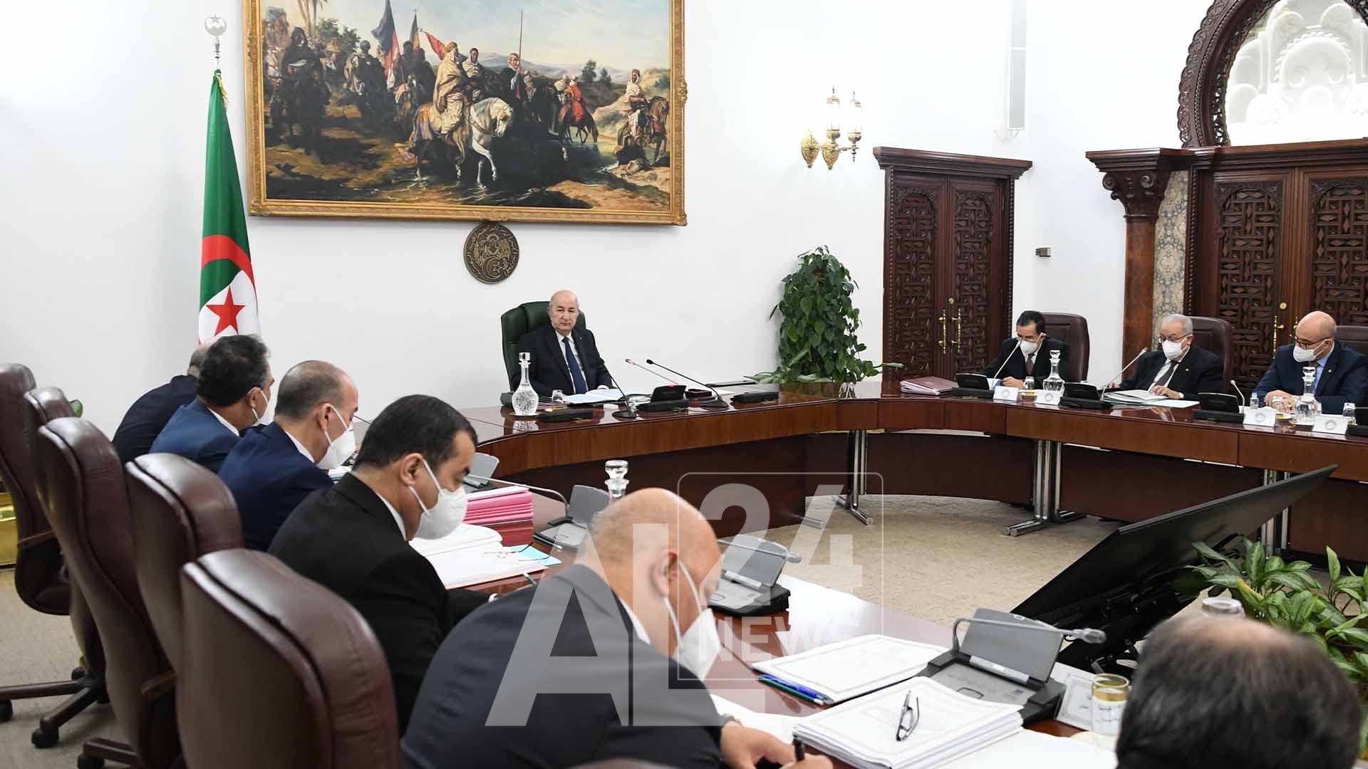 « Monsieur Abdelmadjid Tebboune, président de la République, Chef suprême des Forces armées, ministre de la Défense nationale, a présidé, aujourd’hui, une réunion du Conseil des ministres consacrée à deux projets de loi relatifs à la Justice militaire et à la lutte contre la corruption par la création d’une Agence nationale de gestion des biens gelés, saisis et confisqués, outre des exposés sur le programme complémentaire de développement de la wilaya de Tissemsilt, la création de l’Agence nationale de dessalement d’eau et le suivi de la mise en œuvre de la feuille de route pour le développement de la flotte nationale de transport maritime de marchandises.