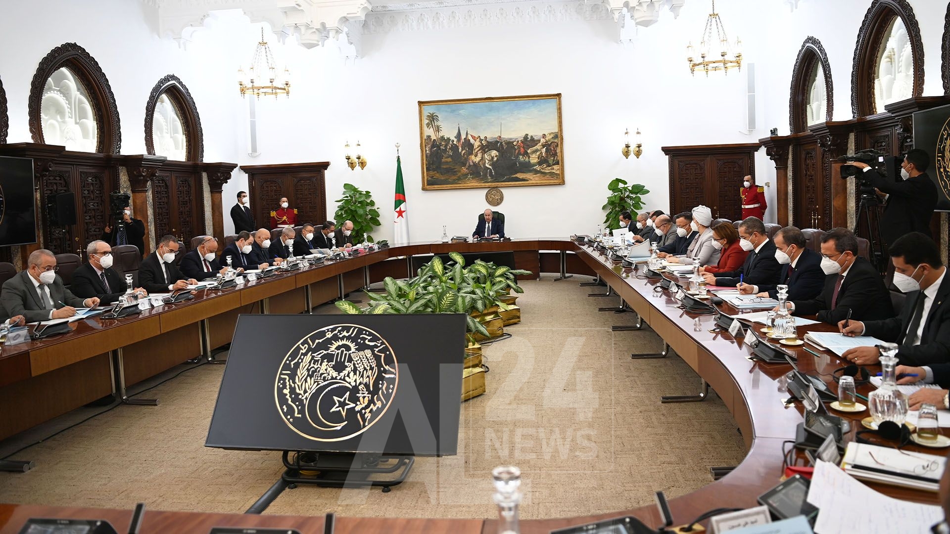 « Monsieur Abdelmadjid Tebboune, Président de la République, Chef suprême des Forces armées, ministre de la Défense nationale, a présidé, ce jour, une réunion du Conseil des ministres consacrée à l’examen d’un projet de loi relatif à la prévention et à la lutte contre la traite des personnes, et des exposés ministériels conjoints portant sur le mécanisme d’approvisionnement du marché national en Urée 46%, les préparatifs pour le mois sacré de Ramadhan 2023, et le dessalement de l’eau de mer.
